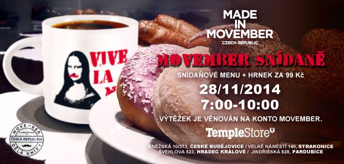 Jednou takovou firmou je i TempleStore, který přichází se speciální MO-edicí výrobků značky Horsefeathers, jejichž koupí přispějete na konto Movemberu. A navíc příští pátek 28. 11. 2014 se pořádá speciální Movember snídaně v prodejně TempleStore (Kněžská 10/373), kde byste neměli chybět.