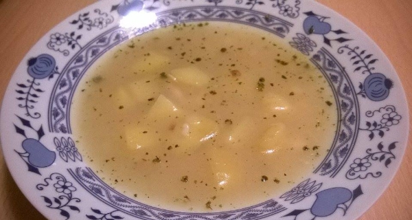 Osmaženou cibuli zalijeme částí uvařené vody, přidáme hladkou mouku (2 lžíce) a snažíme se rozmíchat tak, aby nevznikaly hrudky. Poté přidáme zbytek vody, kostky bujónu podle návodu (naleznete na zadní straně balení) a nakrájené brambory. Polévku vaříme tak dlouho, dokud nejsou brambory měkké (uvařené). Vypneme plotýnku a přidáme lžičku majoránky, promícháme a máme hotovo.