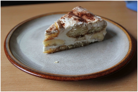 Uvaříme si kávu, necháme ji vychladnout a přidáme trochu rumu. V misce smícháme tvaroh, zakysanou smetanu a 2–4 lžíce cukru (záleží na tom, jak moc sladíte). Do velké misky si vyskládáme na dno piškoty, zalijeme kávou tak, aby se piškoty nasákly, další vrstva bude tvarohová směs, na kterou pak dáme nakrájené banány, opět vyskládáme piškoty, zalijeme kávou a dáme tvarohovou směs. Vrchní část posypeme Grankem nebo nastrouhanou čokoládou a dáme uležet do ledničky.