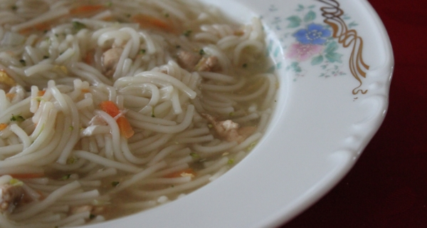 (těstoviny), mrkev, petržel (brokolice, květák), kuřecí maso (stačí